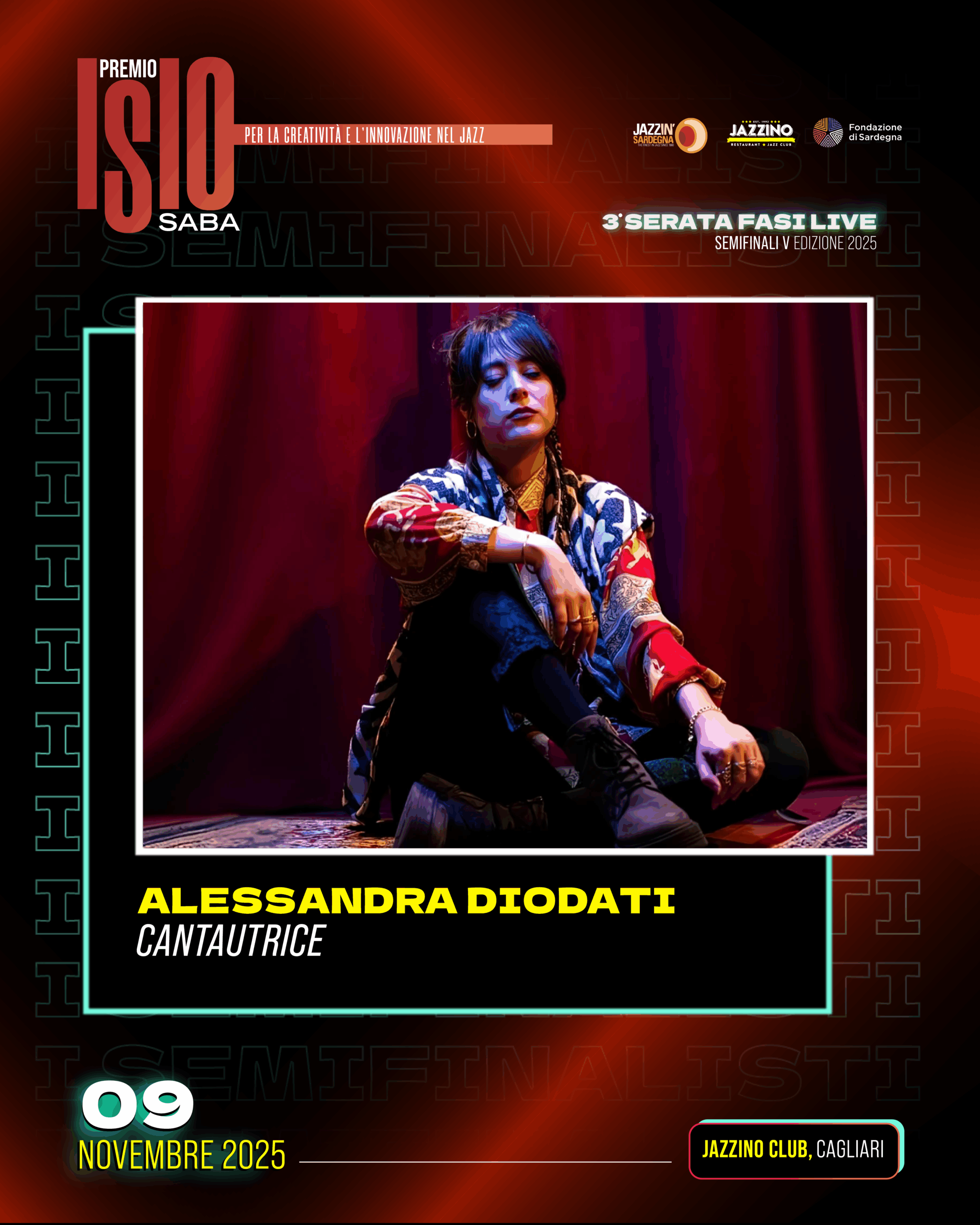 Il vincitore assoluto e il vincitore della Menzione Speciale dedicata quest’anno alla figura di Massimo Ferra, avranno la possibilità di partecipare agli eventi inseriti nel cartellone del Festival Internazionale Jazz in Sardegna. L’elenco dei musicisti giunti alle fasi finali e quello dei tre finalisti sarà pubblicato sulle pagine dell’omonimo sito recentemente rinnovato: https://premioisiosaba.it/ La serata finale di premiazione (finalissima) si svolgerà il 30 novembre 2025 al Teatro Massimo di Cagliari.