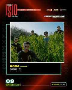 Terzo e ultimo appuntamento domenica 9 novembre (ore 20.30) con le semifinali live della quinta edizione del Premio Isio Saba. Organizzato da Jazz in Sardegna in collaborazione con l’associazione culturale Il Jazzino di Cagliari, la terza serata del Premio Isio Saba vedrà sul palco di via Carloforte, Cagliari, quattro gruppi che fondono studio, coraggio e una nuova concezione del jazz.