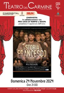 Il mese si concluderà con l’appuntamento del 24 novembre quando andrà in scena l’atteso lavoro di Pino Quartullo” La storia di Francesco”.