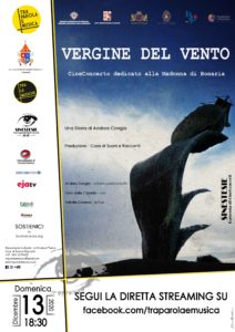 La Casa di Suoni e Racconti presenta, nel mese di dicembre, la quarta edizione della Rassegna di CineConcerti SINESTESIE, una selezione di opere visive sonorizzate dal vivo con l’obiettivo di portare il Cinema “quasi” sul Palcoscenico e la Musica “quasi” sullo Schermo. Per l’anno 2020 la Rassegna è dedicata alla Città di Cagliari, alla sua storia, alle sue ricorrenze e alle peculiarità che l’hanno resa protagonista nella Storia, proponendo ancora una volta forme di interazione performativa tra la Musica e il mondo dell’Arte Visiva. Dopo gli appuntamenti con La Città Bianca sullo Schermo e Un Vecchio Cuore RossoBlu, realizzati sabato 5 e domenica 6 dicembre, seguirà il terzo racconto sinestetico, Vergine del Vento. Questa nuova produzione della Casa di Suoni e Racconti sarà trasmessa gratuitamente sulla pagina facebook dell’Associazione (www.facebook.com/traparolaemusica), domenica 13 dicembre 2020, alle ore 18.30, in diretta streaming dal CineTeatro Nanni Loy di Cagliari. Il viaggio visivo e musicale, composto da 7 capitoli affidati ad altrettanti montatori video (Fernando Pascual, Roberto Cadeddu, Marco Camba, Viviana Mura, Roberta Murgia, Marco Oppes e Andrea Vinci), sarà un omaggio alla Madonna di Bonaria e al destino del Popolo Sardo. La Città di Cagliari ed il Santuario di Nostra Signora di Bonaria divengono pertanto protagoniste assolute nelle riprese video catturate dai cameramen Fernando Pascual, Alberto Schirru, Enrico Picchiri e dal video-operatore SAPR Davide Manca (Flymedia), e nelle immagini storiche del collezionista Sergio Orani. Il progetto artistico si avvale della partecipazione del giornalista Giacomo Serreli, della signora Pierina Fois e della piccola Matilde Caria. La sonorizzazione live sarà opera del chitarrista e compositore Andrea Congia, autore del Film, che guiderà musicalmente il Coro delle 7 Spade (Ylenia Baldinu, Roberta Campus, Chiara Faedda, Sara Fenza, Anna Fronteddu, Petra Haluskova, Melania Lai, Manuela Loi, Silvia Mascia, Deborah Murru, Valentina Scanu, Cristiana Spinetti, Denise Zucca), esperimento artistico open e composto per l’occasione da un ensemble di voci femminili, e la performance della tap dancer Natalia Cadena.