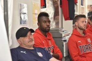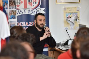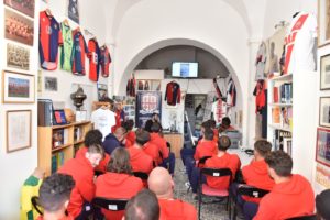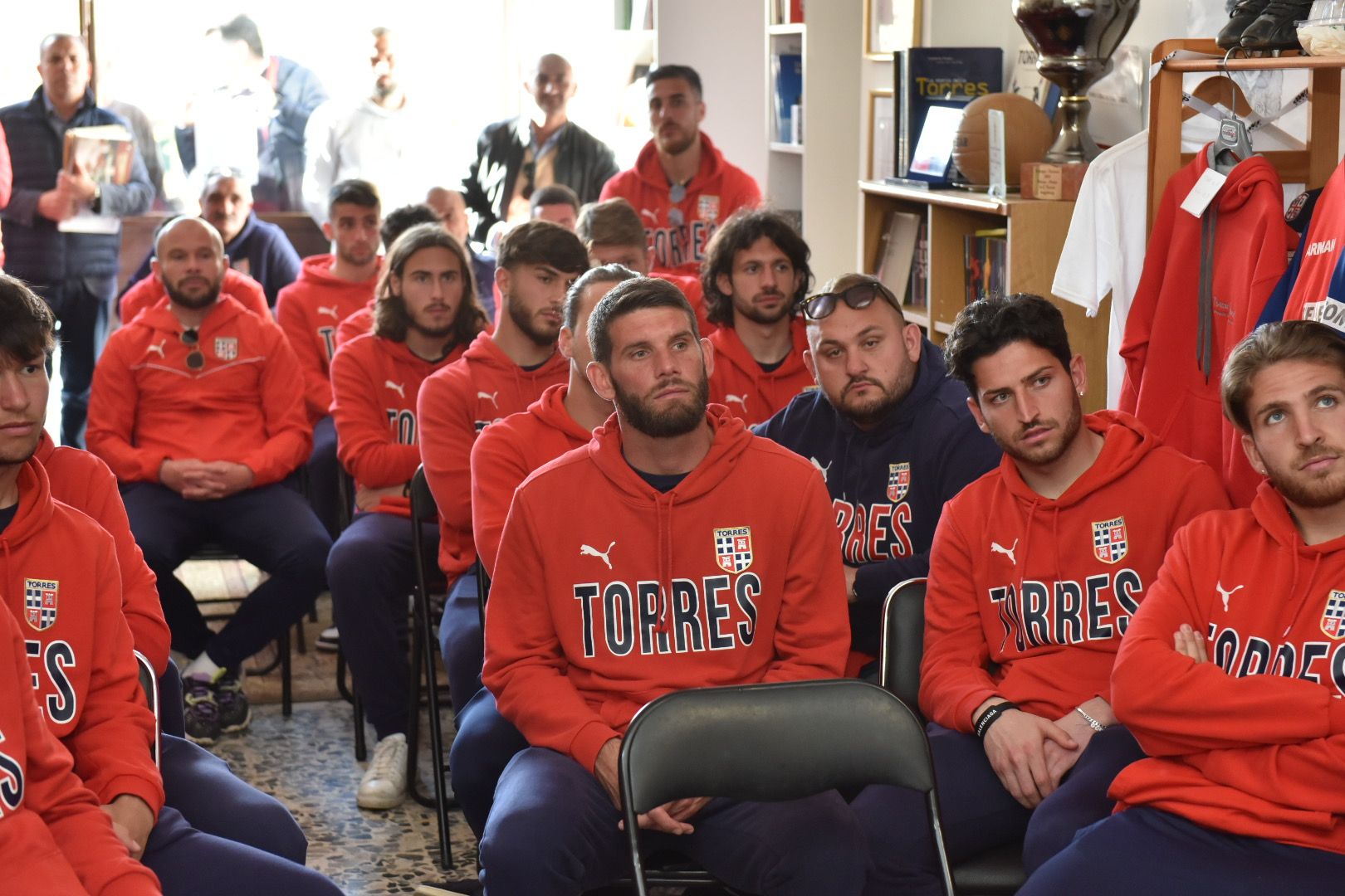 Per dare ulteriore sostanza al messaggio, per rafforzare il concetto, per cementare ulteriormente il legame fra società, squadra e città, grazie alla disponibilità dell’Associazione Memoria Storia Torresina negli spazi della Biblioteca Popolare dello Sport in centro storico, nel tardo pomeriggio di oggi è stato organizzato un incontro in cui al ritmo di slide e fotografie proiettate sullo schermo, è passato il racconto di calcio ed emozioni legato alle grandi storie e ai grandi personaggi dei 119 anni della Torres. Presente la prima squadra, al gran completo.