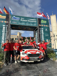 Sul gradino più alto del podio di Berchidda, sono saliti Alberto Battistolli e Simone Scattolin (Skoda Fabia Rs Rally2, in 52’39”8), capaci di cambiare il finale, che sembrava già scritto, di uno spettacolare 21º Rally dei Nuraghi e del Vermentino.
