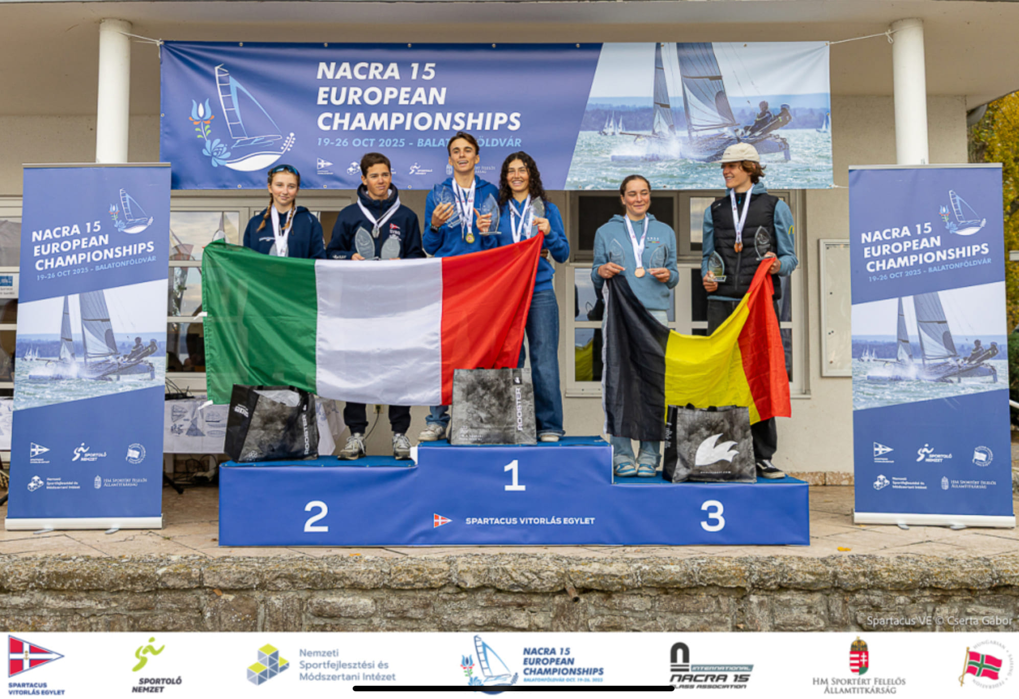 La consacrazione, nella classe giovanile propedeutica al Nacra 17 olimpico, tra i migliori giovani equipaggi europei della classe giovanile – 42 le squadre provenienti da tutta Europa, tra cui 13 equipaggi italiani – è arrivata ieri, domenica 26 ottobre, dopo un campionato ricco di sfide, con vento incostante, raffiche imprevedibili e giornate fredde, ma che ha assegnato all’Italia due podi overall, tre podi giovanili e la vittoria della Nations Cup.