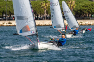 Si è conclusa oggi una seconda giornata intensa del Campionato Europeo Youth Team Race RS Aero, tenutosi nel suggestivo bacino di Su Siccu (tra la base di Luna Rossa e il Marina di Bonaria), a Cagliari. Nonostante le impegnative condizioni di vento, con raffiche di 20-25 nodi, il round robin si è concluso regolarmente grazie alla protezione naturale del campo di regata, che ha permesso alle 12 squadre di completare tutti i 66 match previsti.