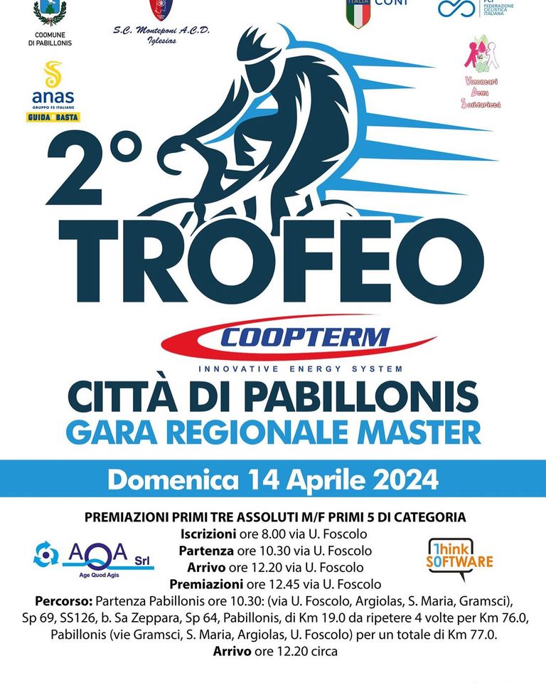 Per i Master l’appuntamento, infine, è a Pabillonis. Qui, con partenza alle 10,30 dal Bar Universo di via Ugo Foscolo, la SC Monteponi di Gigi Mascia ha messo in piedi il 2° Trofeo Coop Term, gara di complessivi 77 km ricavati su un circuito di 19 km da ripetere quattro volte.