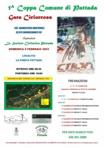 E’ ancora il ciclocross l’autentico protagonista del week end ciclistico isolano. Domani, a Pattada, andrà in scena la 1° storica edizione della Coppa Comune di Pattada. In gara ci saranno tutte le categorie agonistiche e amatoriali lungo il tracciato quasi interamente in sterrato (ad esclusione di un breve tratto di 100 metri in ciottolato) realizzato all’interno della locale pineta grazie all’organizzazione della Società Ciclistica Pattada. Presenti anche alcuni ostacoli naturali ed artificiali. Partenza alle ore 10.00.