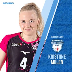 «Non c’è voluto molto per convincermi – ha dichiarato Kristiine Miilen -. L’Italia, per me, è la più grande nazione di volley al mondo ed è sempre stato un mio sogno andarci a giocare. Ho avuto delle offerte da altri Paesi, ma quando il mio agente mi ha parlato dell’Hermaea, ho subito pensato che fosse il posto giusto per me: squadra ambiziosa, campionato importante, coach esperto e compagne di talento. In più il ‘bonus’ legato al territorio meraviglioso. Mi sono detta: se fai ciò che senti, le cose non potranno che andar bene.»