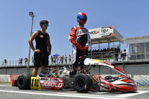 La trasferta in terra campana non è stata facile per il campione sardo della Kz2. Giorgio Basoli ha completato la prima manche di qualifica al quindicesimo posto dopo una serie di contatti che lo hanno penalizzato. Nella Q2, invece, dopo essere risalito dalla ventiduesima alla tredicesima posizione grazie a un ottimo passo, è stato escluso dopo essere risultato sottopeso di duecento grammi.