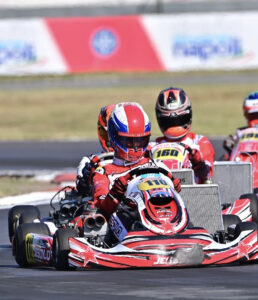 Nella Finale 1, l’alfiere della Jesolo-Technology-Kart è partito trentesimo ma, a causa di un contatto in avvio di gara, è scivolato in ultima posizione, a 2” dal gruppo. Un imprevisto che non ha fermato l’agguerrito sedicenne cagliaritano, capace di recuperare fino a portarsi in ventesima posizione grazie a un passo da top5.