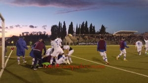 L’arbitro ha segnalato che il tiro dagli undici metri avrebbe messo fine ai tempi supplementari e Giuseppe Meloni ha trasformato con grande freddezza e precisione il penalty, spiazzando James Cohen Kirby ed allungando così la sfida infinita ai calci di rigore.