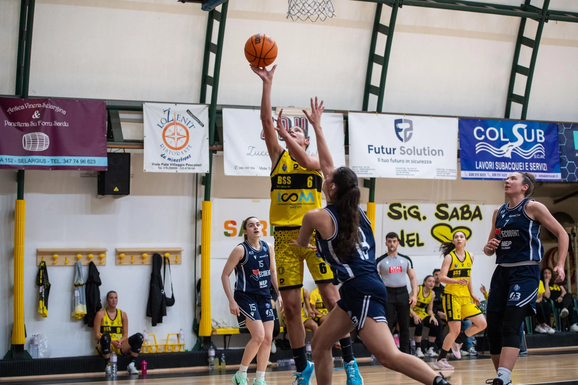 Alpo parte in fiducia con Parmesani su di giri e il primo parziale è eclatante: 8-21. Selargius non trova canestri dalla linea dei tre, il gioco dentro l’area funziona solo a metà. Già nel secondo periodo arriva la riscossa e tutto il collettivo giallonero contribuisce al referto di gara, arrivando all’intervallo lungo in svantaggio di sei lunghezze (36-40).