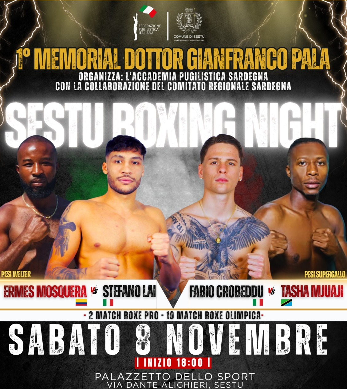 Un grande evento di boxe dove in primis combatteranno gli imbattuti gioielli del boxing sardo pugili pro Stefano Lai, al suo ottavo match da pro, e Fabio Crobeddu, al suo quinto match da po.