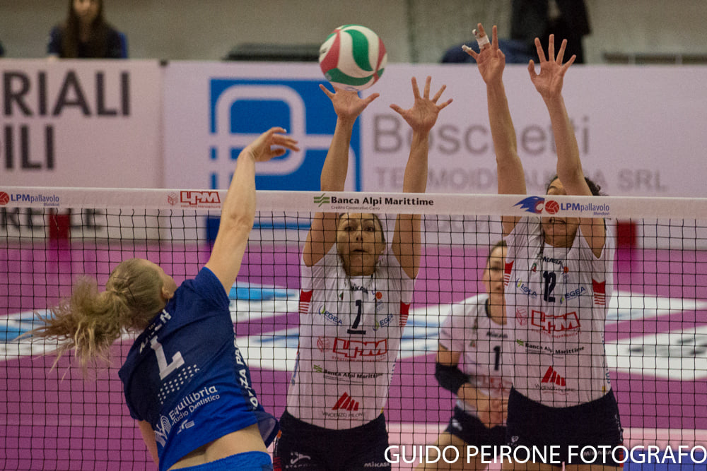 Le hermeine rialzano la testa in apertura di quarto parziale (6-2 con muro vincente di Renieri). Mondovì risale la china fino al -2 (12-10), il sestetto di Guadalupi approfitta di un paio di difese eccellenti di capitan Caforio e ricaccia indietro l’assalto (19-14 e tempo chiesto da Solforati). Gli attacchi al centro fanno male alle monregalesi, che soffrono la verve di Barbazeni e si vedono raggiunte nonostante gli sforzi di Taborelli (25-19).