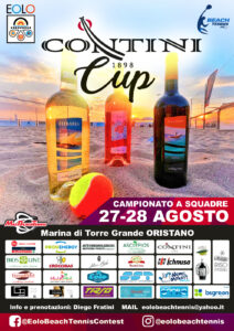 Sabato 27 e domenica 28 agosto i campi dell’Eolo Beach Tennis, nella Marina di Torre Grande, ospiteranno l’edizione 2022 “Vini Contini Cup”, valida per la fase regionale di serie C, durante la quale tutte le associazioni sarde schiereranno in campo le atlete e gli atleti per cercare di strappare i pass validi per la fase nazionale Serie C che si svolgerà in autunno, presumibilmente a Faenza.