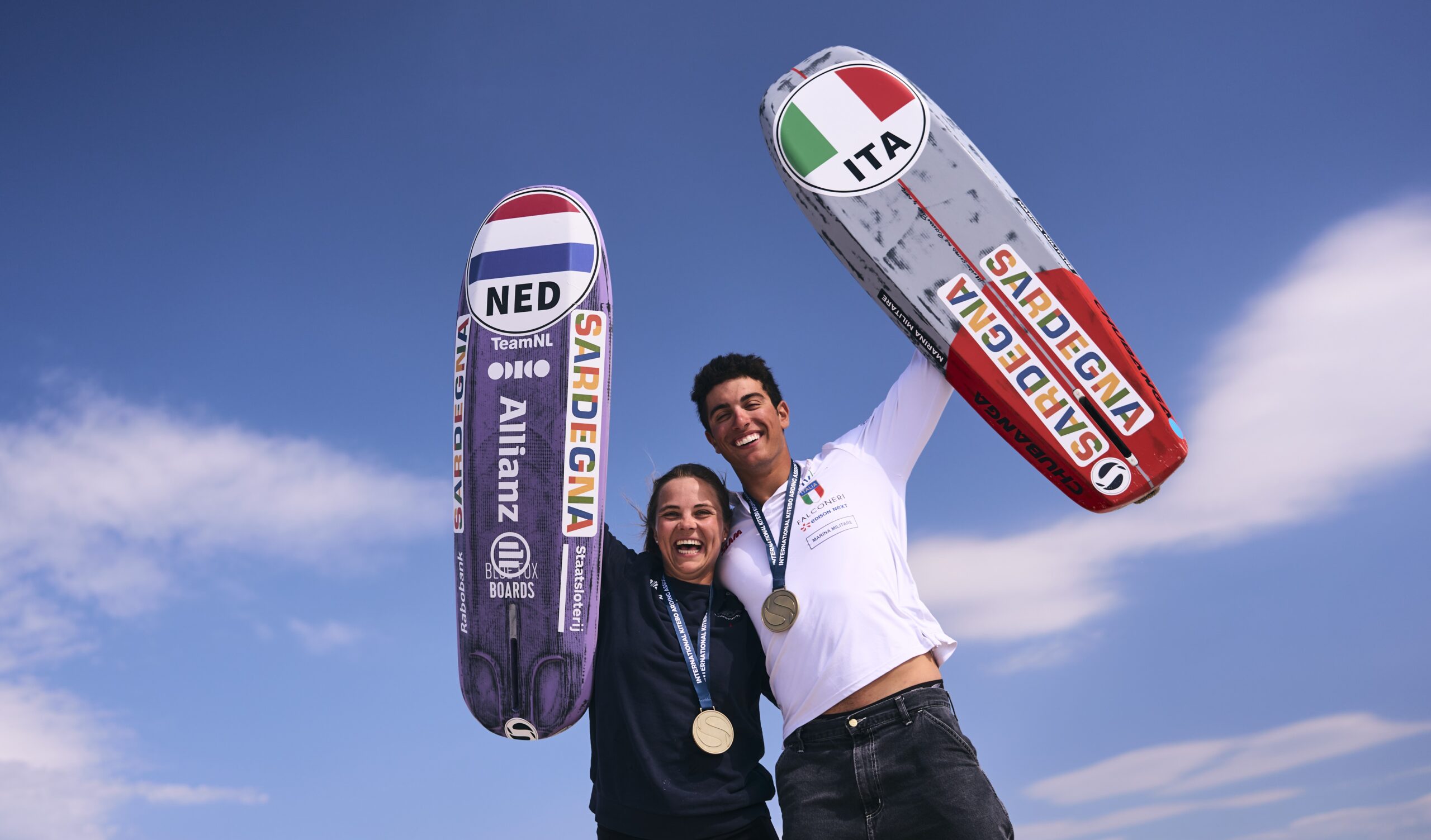 Riccardo Pianosi e Jessie Kampman sono i campioni del mondo di Formula Kite. Si sono presi la corona vincendo la nona edizione del Sardinia Grand Slam, valida quale Mondiale 2025 della disciplina che ha fatto il suo debutto olimpico lo scorso anno a Parigi. Nelle rispettive Grand Final, disputate a Quartu Sant’Elena (CA) a conclusione delle Medal Series domenica 5 ottobre, Pianosi e Kampman hanno preceduto l’uno Maximilian Maeder e Benoit Gomez, argento e bronzo fra gli uomini, l’altra Daniela Moroz e Lauriane Nolot, seconda e terza in campo femminile. Per Pianosi e Kampman è il primo titolo mondiale, ma lo è anche per Italia e Olanda nella Formula Kite. Le Medal Series si sono disputate con venti di maestrale fra i 14 e i 20 nodi.