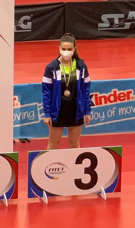 Buon risultato ai Campionati Nazionali Giovanili di tennis tavolo a Terni per Laura Pinna. L’atleta della Tennistavolo Sassari, classe 2009, è salita sul podio della competizione Under 13 sia nel singolare sia nel doppio, portandosi a casa due medaglie di bronzo.