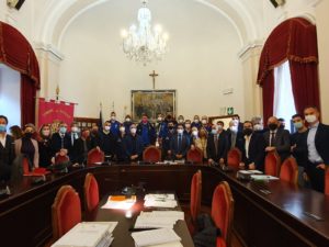 La Raimond la squadra di pallamano maschile sassarese entrata nella storia per aver portato a casa quest’anno la prima Coppa Italia maschile della Sardegna, è stata ricevuta in apertura dei lavori dal Consiglio comunale di Sassari.