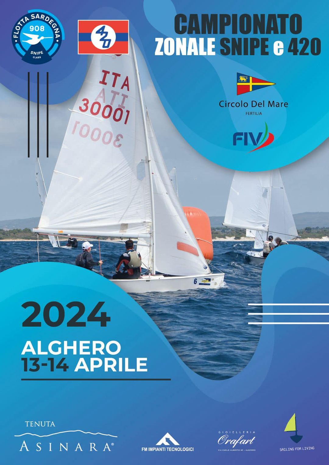 Al via questa mattina il Campionato Zonale Snipe e 420 2024, prevista una ventina di equipaggi provenienti da tutta la Sardegna tra le due classi in gara. Le flotte si sfideranno nelle acque del Golfo di Alghero per un totale di 4 prove, tra sabato e domenica, organizzate dal Circolo del Mare di Fertilia. Le regate si svolgeranno su percorsi a “bastone” in modo da consentire alle imbarcazioni una dura battaglia tra bolina e poppa.