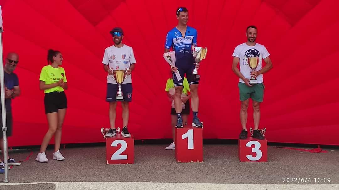 Secondo posto per Alessio Cancedda della SC Monteponi con un gap di appena 2 secondi. Terzo Andrea Costanzo dell’Ajo-Ergen Team, sempre con 2 secondi di ritardo rispetto a Jacob.