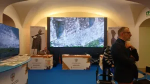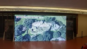 Lo spazio espositivo della Sardegna, collocato in un’area di grande visibilità, ha proposto un percorso immersivo che intreccia archeologia, paesaggio, comunità e innovazione. L’allestimento, curato dalla Carlo Delfino Editore, ha utilizzato pannellistica autoportante e ledwall ad alto impatto visivo, realizzati con materiali sostenibili e contenuti accessibili, offrendo ai visitatori una narrazione unitaria dell’isola come sistema culturale integrato.
